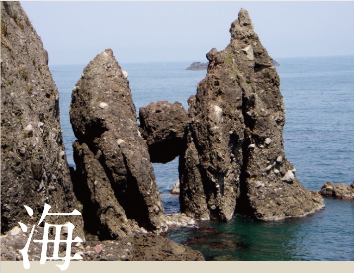 山陰海岸はリアス式海岸で変化に富んだ景観が特色で、吸い込まれそうな深い海の色や断崖絶壁に激しく打ち寄せる波しぶきをじっくりと見ることができます。日和山海岸の沖に浮かぶ「後が島」はまるで竜宮城。日本の昔話「浦島太郎」にまつわる伝説が残ります。兵庫県の名勝のはさかり岩は海食洞の天井の岩が落ちて壁の岩に挟まってできたと考えられる奇岩です。想像力をかきたて、イマジネーションを刺激するビュースポットです。
